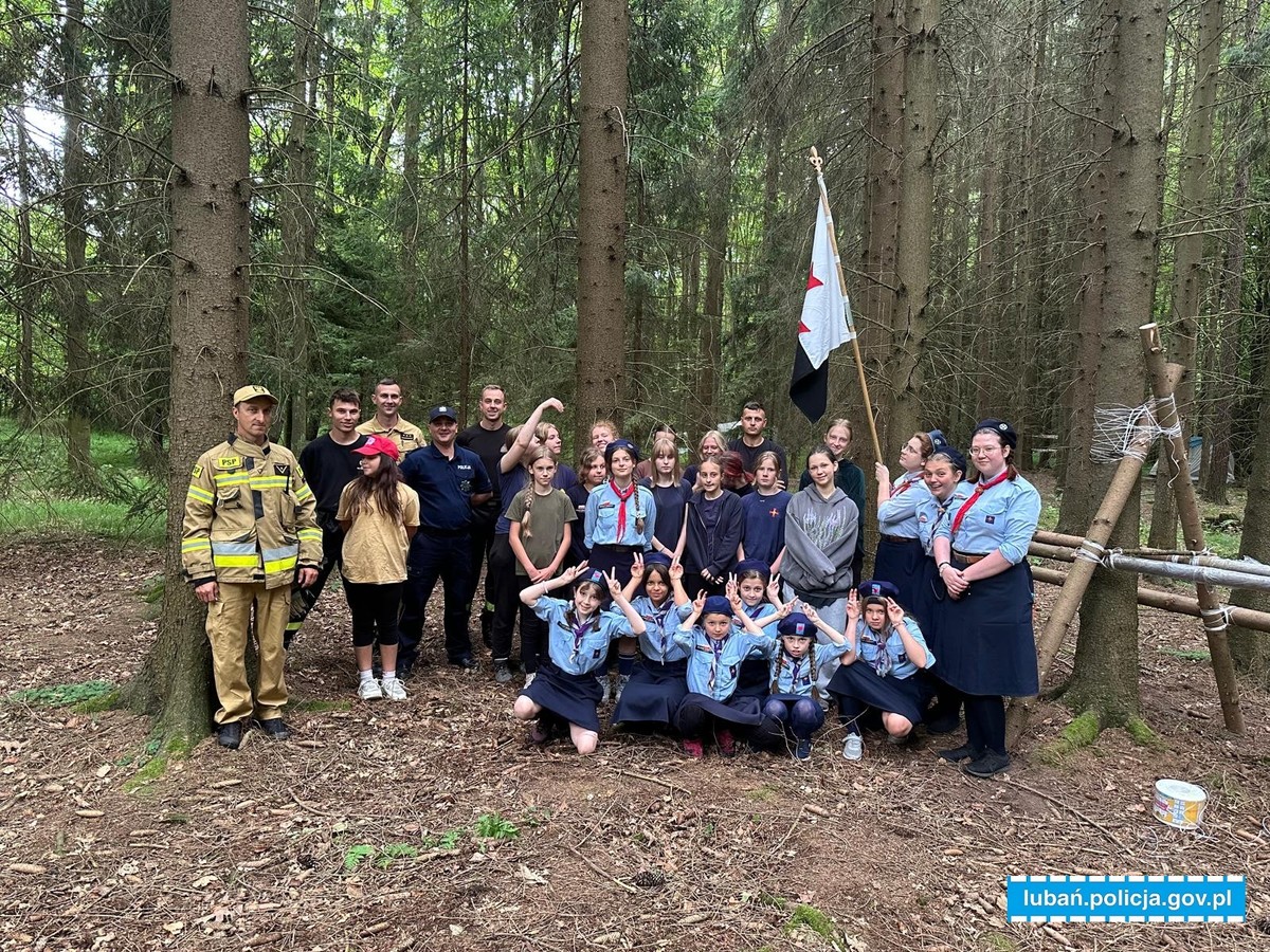 Funkcjonariusze lubańskiej policji w trakcie obozu harcerskiego na terenie Platerówki sprawdzają m.in. bezpieczeństwo uczestników w kontekście zagrożeń zewnętrznych, takich jak osoby postronne.Przeprowadzają również rozmowy edukacyjne z młodzieżą na temat zasad bezpieczeństwa, pierwszej pomocy i zachowań w sytuacjach zagrożenia.