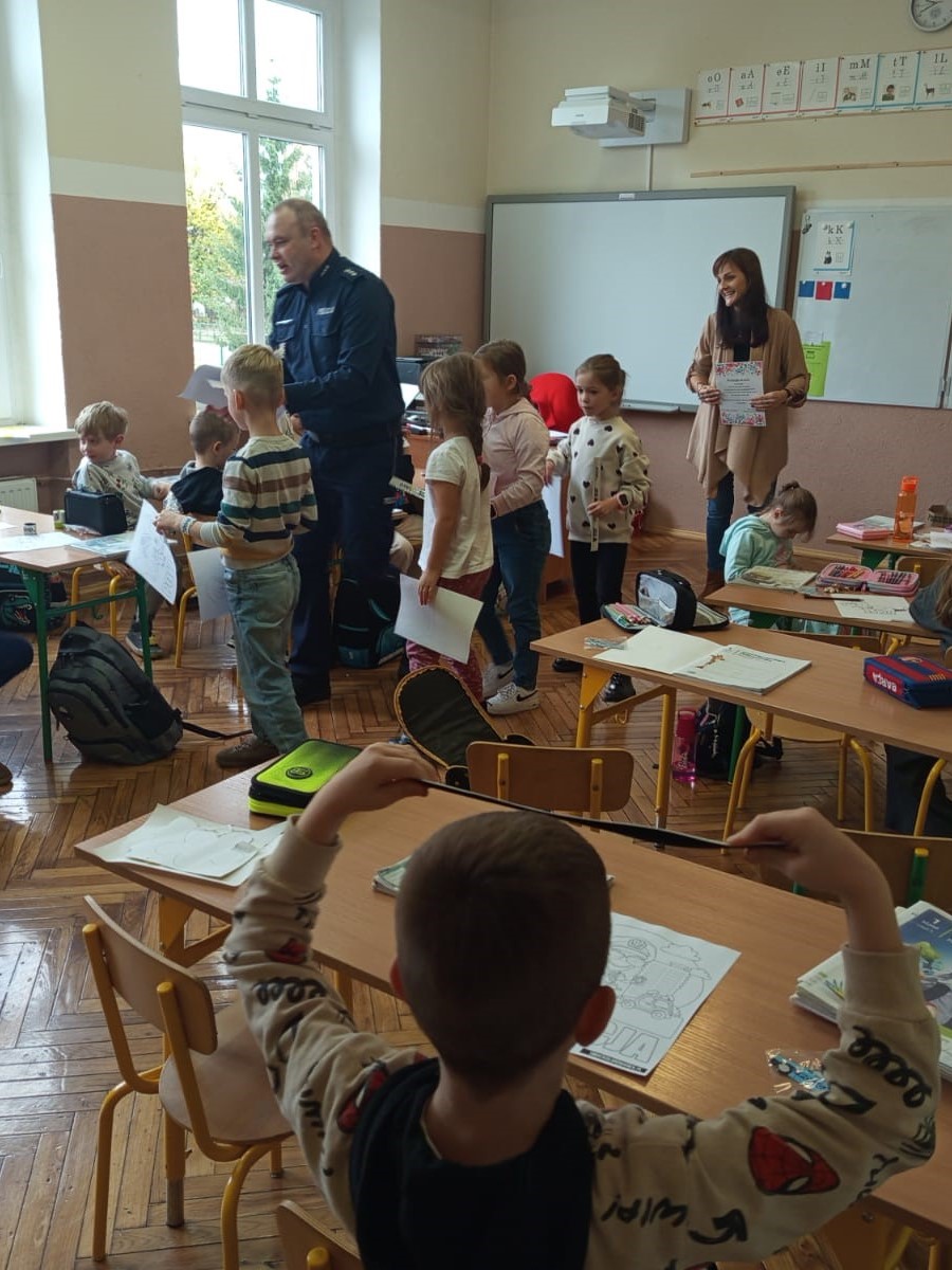 Dla dzieci była to nie tylko ciekawa lekcja, ale też ogromna duma – zobaczyć swojego tatę w mundurze, stojącego przed całą grupą, to coś, co na długo zostanie w pamięci. Policjanci opowiadali o tym, jak wygląda ich dzień w pracy, dlaczego noszą mundur, jak pomagają ludziom i jakie sytuacje spotykają na służbie. Dzieci z zaciekawieniem słuchały, zadając dziesiątki pytań.