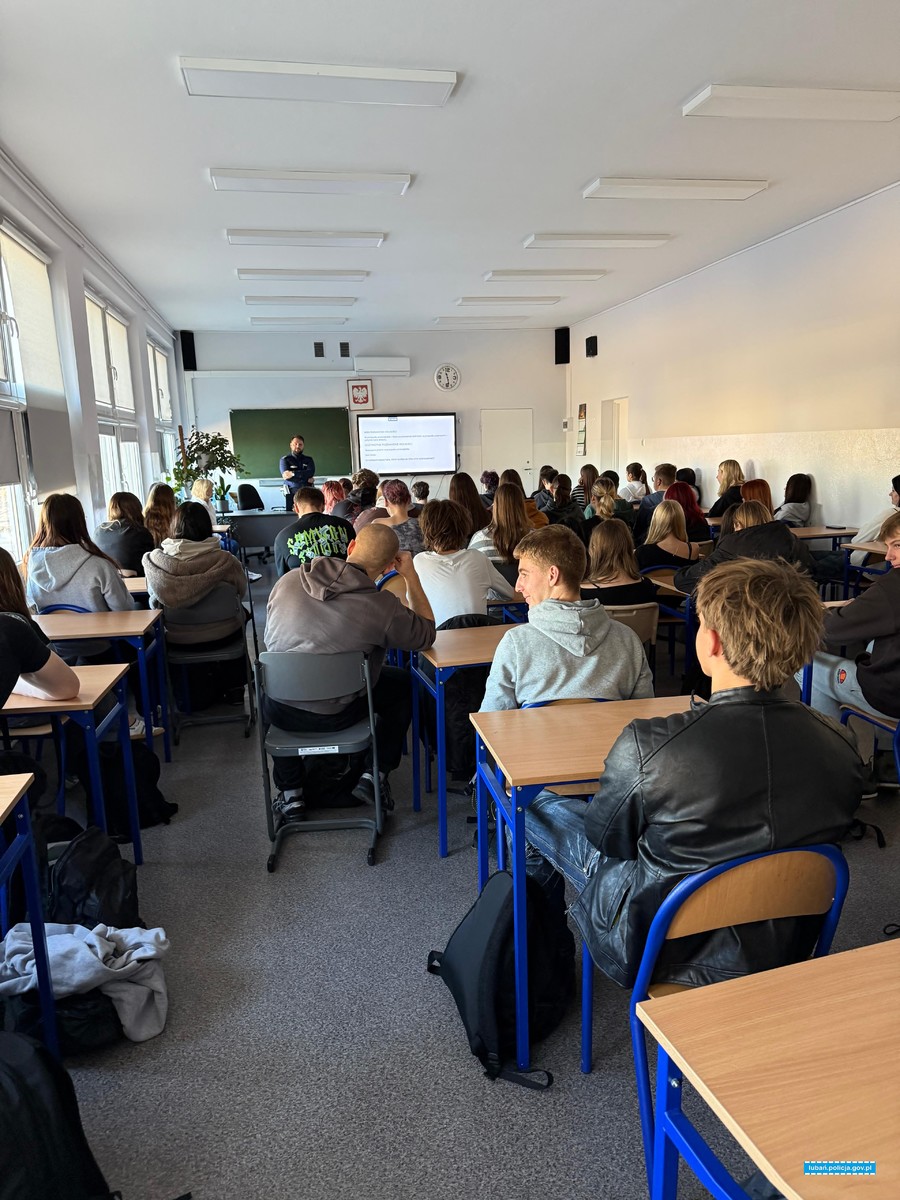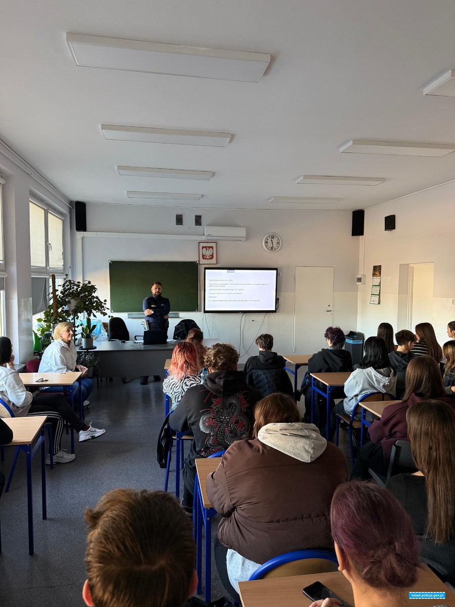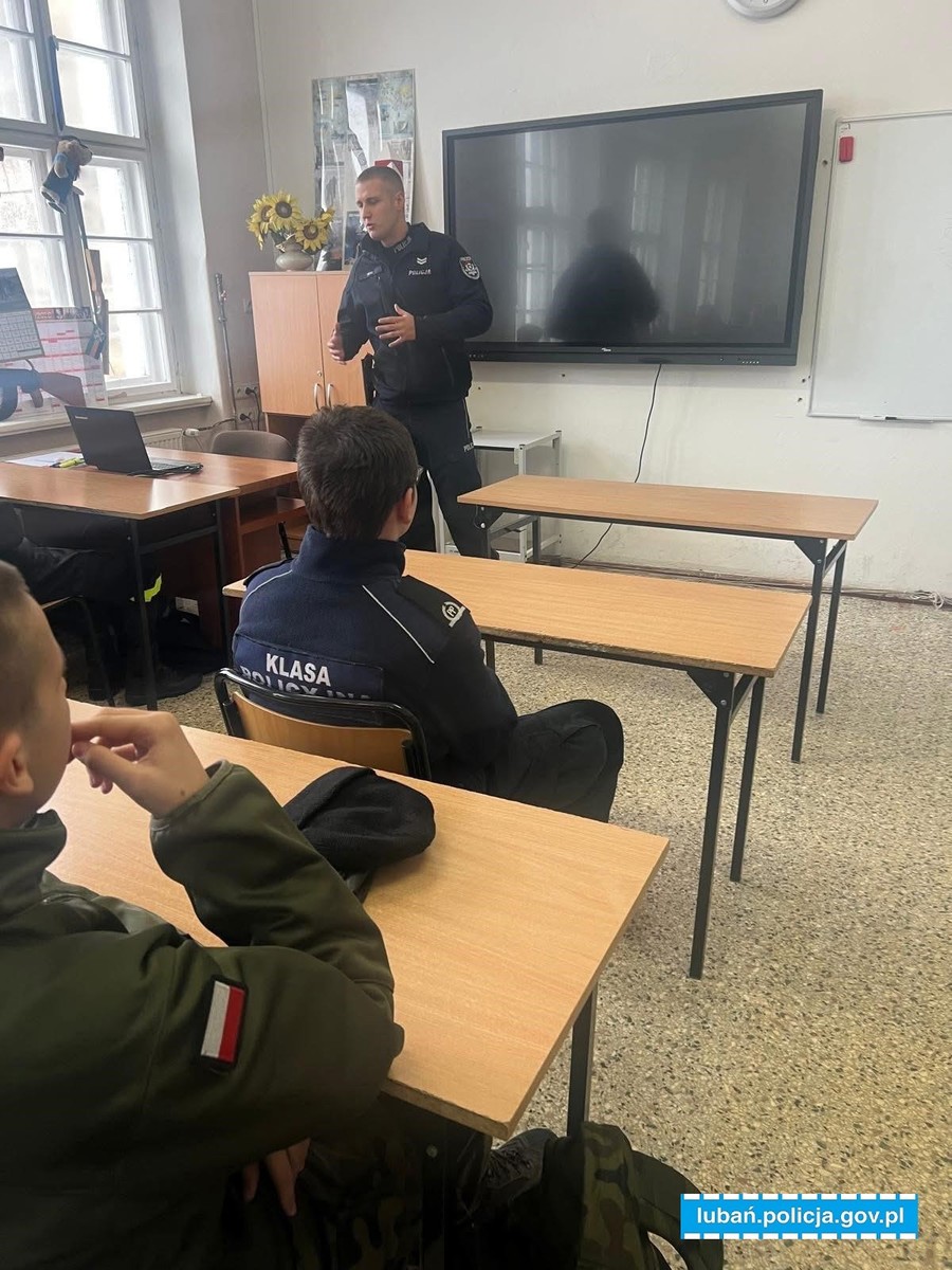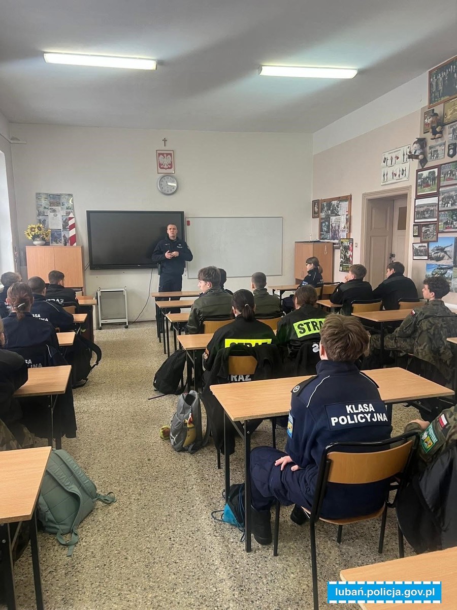 Mundurowi z Komendy Powiatowej Policji w Lubaniu w listopadzie br. spotkali się miedzy innymi z młodzieżą z Zespołu Szkół Zawodowych i Ogólnokształcących im. Kombatantów Ziemi Lubańskiej, Zespołu Szkół Ponadpodstawowych im. Adama Mickiewicza w Lubaniu oraz Liceum Ogólnokształcącego im. Aleksandra Kamińskiego w Lubomierzu, gdzie przekazywali uczniom informację na temat służby w Policji oraz procesu rekrutacji. Omówiona została struktura lubańskiej jednostki i na jakich zasadach działają poszczególne wydziały. Policjanci poruszyli również ważny temat procesu rekrutacji, przekazali, kto może wstąpić w szeregi Policji i jakie dokumenty trzeba złożyć. Informowali, że praca ta umożliwia kontakt z innymi ludźmi, że jest to zajęcie dla tych, którzy chcą robić w życiu coś pożytecznego, czuć wyjątkowość swojej profesji i mieć stałość zatrudnienia. Uczniowie dowiedzieli się nie tylko o przywilejach mundurowych, ale również o trudach pełnionej przez nich służby. Decydując się na pracę w Policji ważna jest chęć niesienia pomocy, empatii, ale również odporność psychiczna, dodał, że od policjantów wymaga się odpowiednich predyspozycji, rzetelności i sumienności.