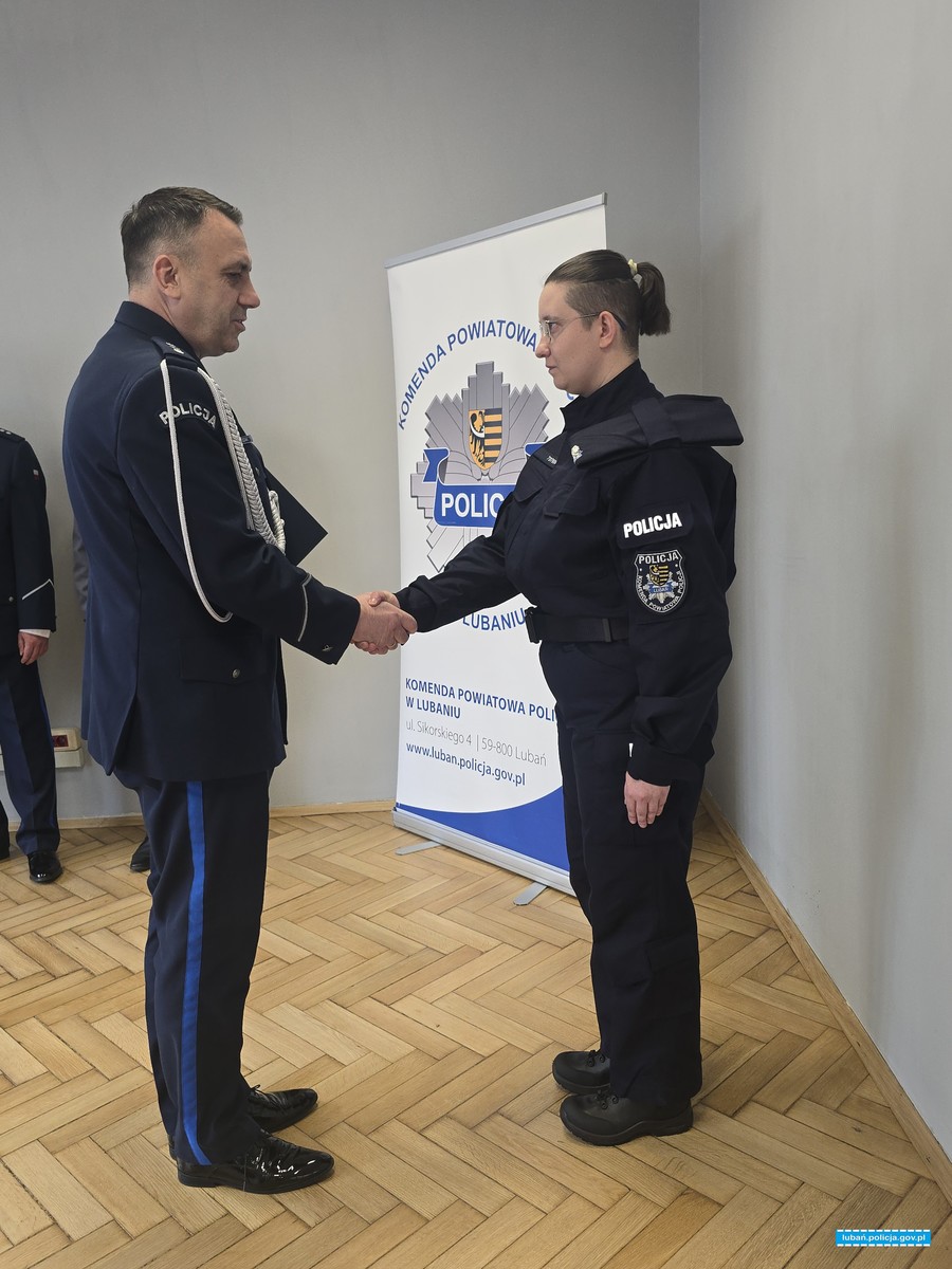 „Ja obywatel Rzeczpospolitej Polskiej, świadom podejmowanych obowiązków policjanta..." - to początek roty ślubowania, którą składała przyjęta do służby funkcjonariuszka, a którą przyjął Komendant Powiatowy Policji w Lubaniu komisarz Dariusz Ślęzak. Nową policjantkę czeka teraz kilkumiesięczne szkolenie, po którym rozpocznie służbę w lubańskiej jednostce Policji.
