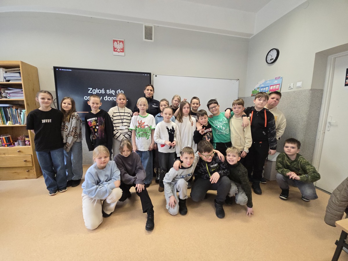 Podczas spotkania funkcjonariusze rozmawiali z uczniami o tym, czym jest hejt i mowa nienawiści, jakie konsekwencje mogą nieść za sobą tego typu zachowania, a także o odpowiedzialności za słowa publikowane w sieci. Poruszono również temat tworzenia grup na czatach, zwracając uwagę na to, jak łatwo mogą one stać się miejscem wykluczania, obrażania innych osób lub rozpowszechniania krzywdzących treści. Policjanci omówili zasady bezpiecznego korzystania z internetu, przypominając uczniom, jak chronić swoją prywatność, reagować na niepokojące sytuacje oraz gdzie szukać pomocy w przypadku zagrożeń online.